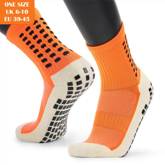 KipFit Anti Slip Socks Orange Football Basketball Running Fitness Sports Grip Socks